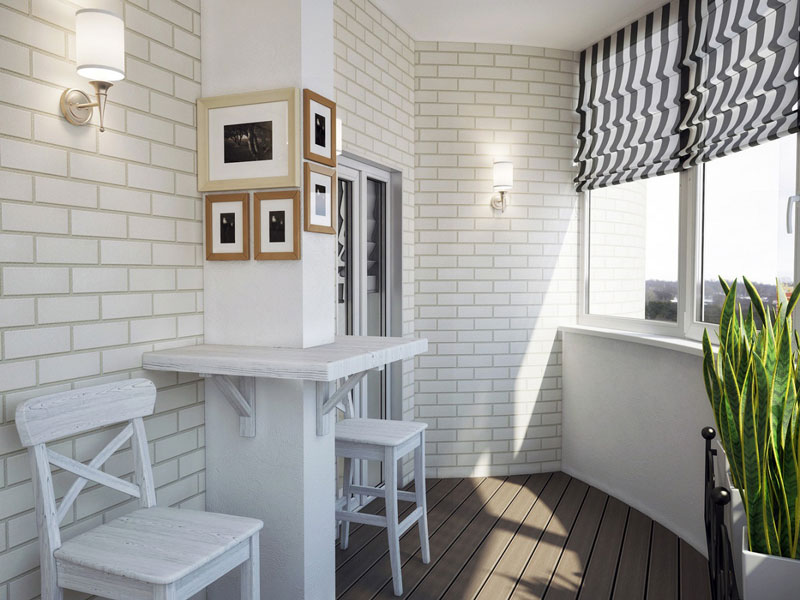 - Внутреннюю отделку лоджии с отделкой разными видами материала (деревом, пробкой, ПВХ панелями, штукатуркой, искусственным камнем и др).